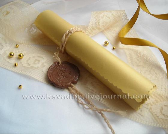 Приглашения-свитки с инициалами жениха и невесты на сургучной печати. Романтичные свадебные рамочки для текста, фигурная обрезка по краям.