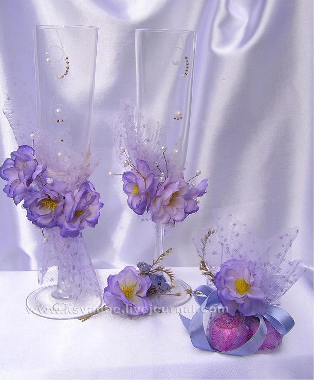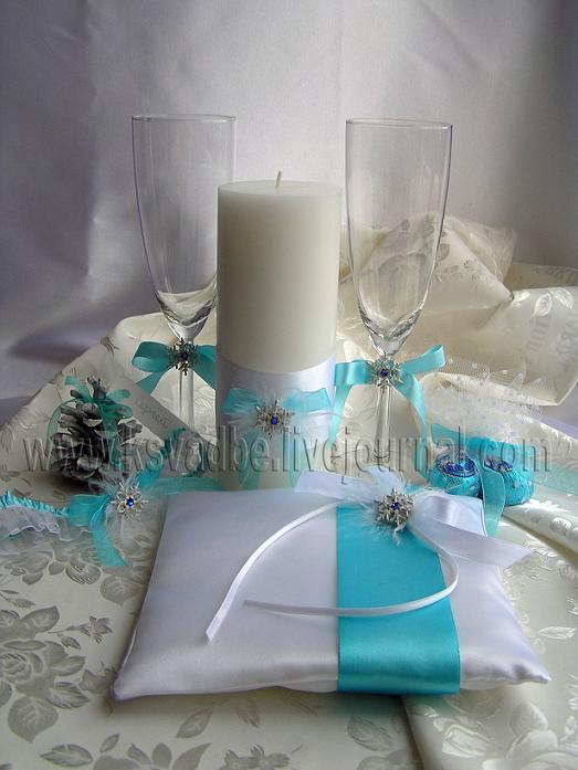 Свадебные бокалы, подушечки для колец, подвязки, бонбоньерки, корзинки и кулечки для лепестков роз, свадебные приглашения, книги пожеланий и многое другое - все в едином стиле и в единственном экземпляре.