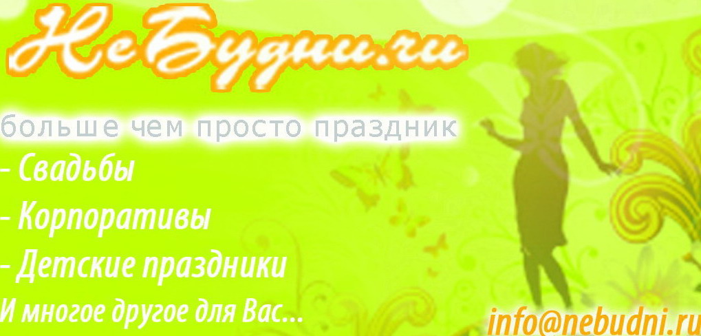 У Вас скоро свадьба, день рождения, юбилей либо другой праздник? Вам стоит всего лишь позвонить в праздничное агентство "НеБудни" и Ваш праздник будет организован безупречно.