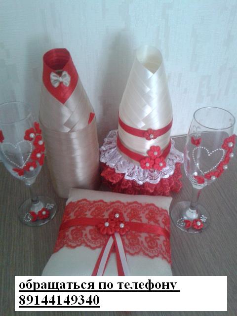 набор от 1300 руб.(одежда для шампанского, бокалы, подушечка) до 2000 руб.(шампанское, подушечка, бокалы, свечи)