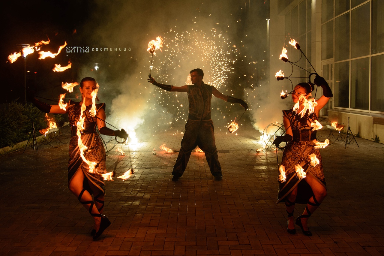 Чтобы праздник приобрел особую атмосферу, необходима особенная программа его проведения. Ярким, волшебным и запоминающимся моментом такого мероприятия станет наше Фаершоу «Ханаби» - представление артистов оригинального жанра, которые мастерски владеют искусством укрощения огня.Мы на сцене уже 11 лет, поэтому знаем, что ждет от нас публика, и отдаем ей свои эмоции и энергию. Глядя на открытый огонь, каждый из нас испытывает завороженность и трепет. Это единая феерия танца искр и огня, пылающие декорации и яркие пиротехнические акценты под эффектную музыку. Пылают огненные сердца, разрезают темноту динамичные вертушки, дорожки украшены фонтанами из разноцветных искр, мерцающими стробоскопами и нежными огненными свечами. В руках близких рассыпают звёзды бенгальские свечи. И в центре вы смотрите друг на друга влюблёнными глазами под залпы салюта.